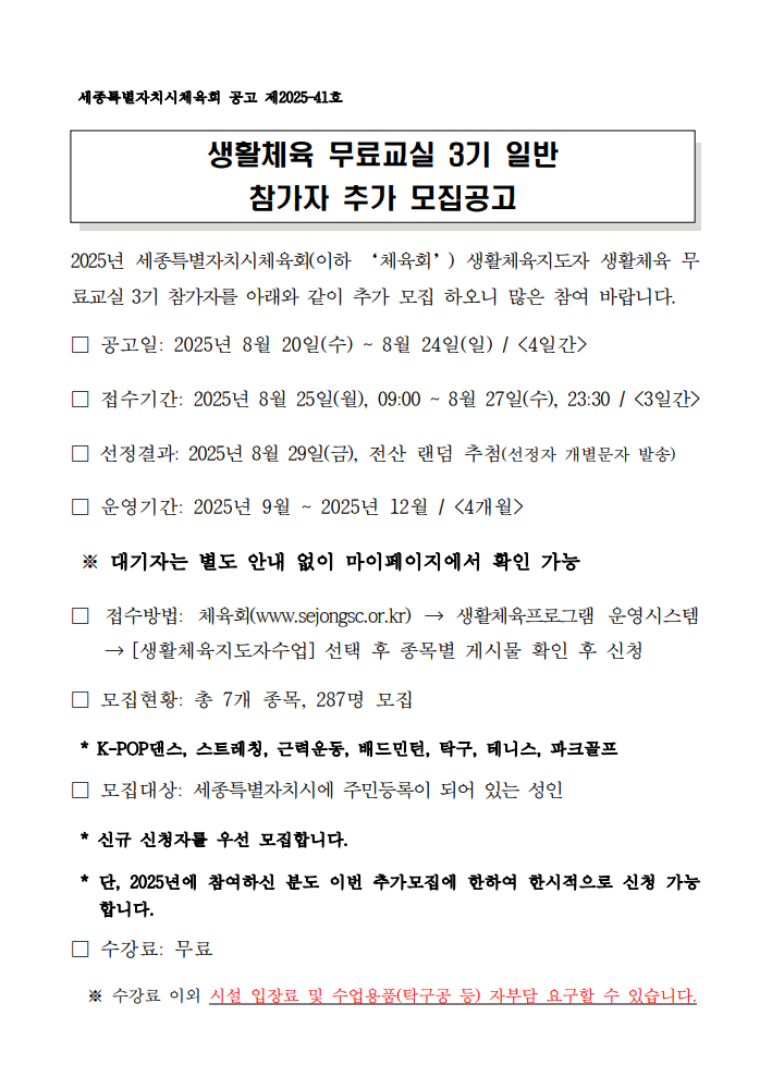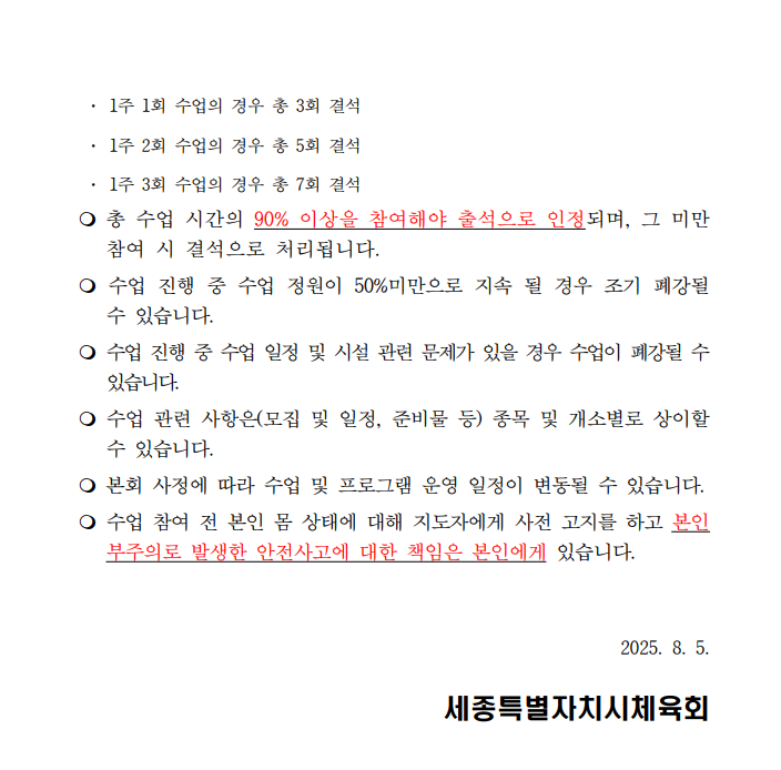 | 강습기간 | 2025.09.01.(월) ~ 2025.12.31.(수) |