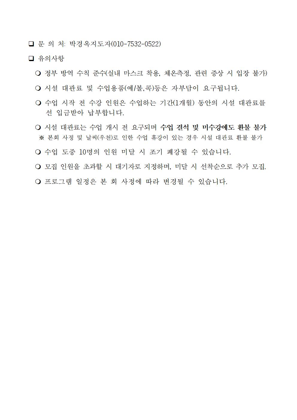 | 강습기간 | 2022.07.25.(월) ~ 2022.09.28.(수) |