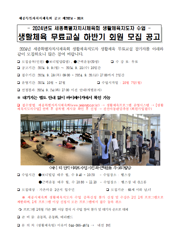 | 강습기간 | 2024.10.07.(월) ~ 2024.12.31.(화) |