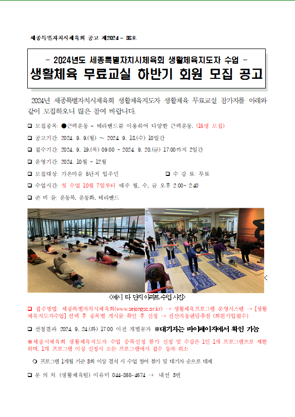 | 강습기간 | 2024.10.07.(월) ~ 2024.12.31.(화) |