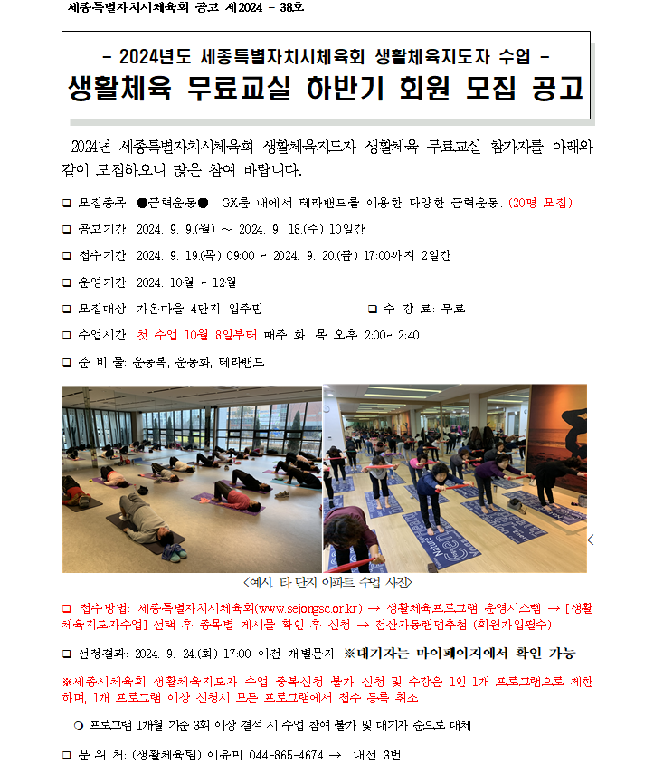 | 강습기간 | 2024.10.08.(화) ~ 2024.12.31.(화) |