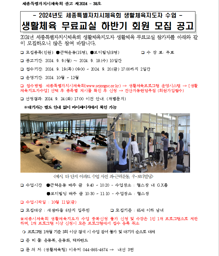 | 강습기간 | 2024.10.11.(금) ~ 2024.12.31.(화) |