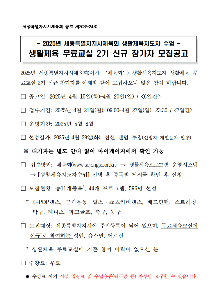 | 접수기간 | 2025.04.21.(월) 09:00 ~ 2025.04.27.(일) 23:30 |